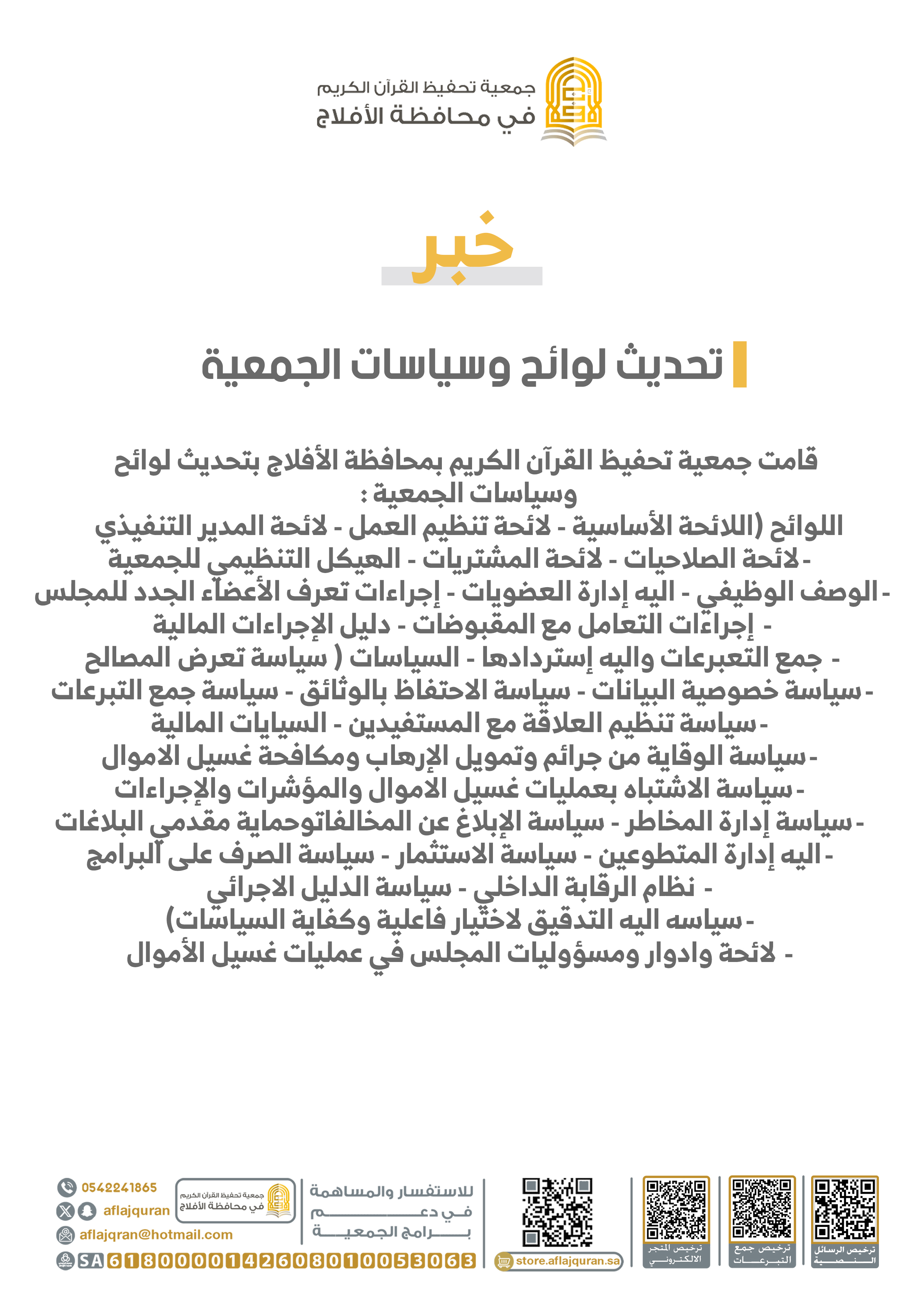 أسماء المرشحين لإدارة مجلس الجمعية الخيرية لتحفيظ القرآن الكريم بالأفلاج للعام 2025 اسماعيل عبدالرحمن ناجي آل عتيق ..